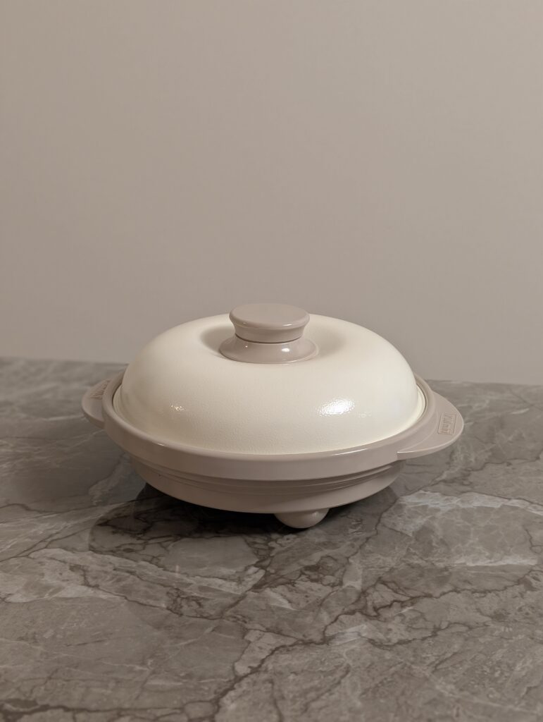 電子レンジなのに「焼く」ができるのが最大の魅力。フタの裏に特殊な遠赤外線プレートが入っていて、これが“加熱+焼き”を同時に実現してくれます。